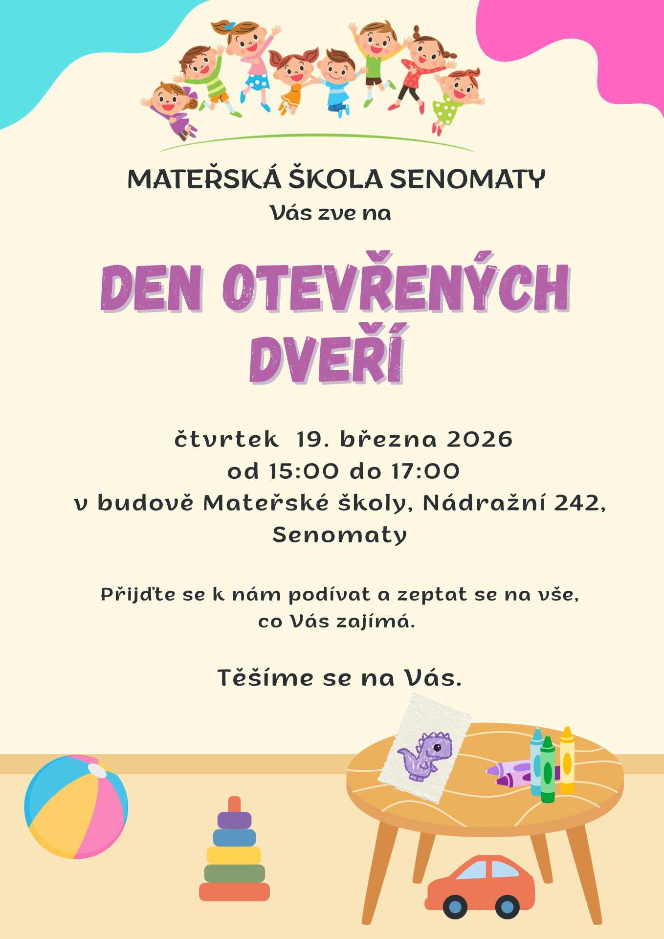 Srdečně zveme všechny zájemce na Den otevřených dveří do naší mateřské školy.